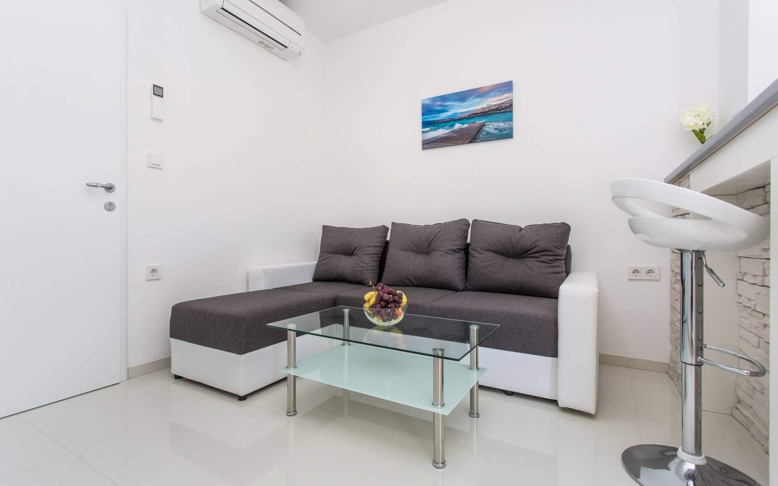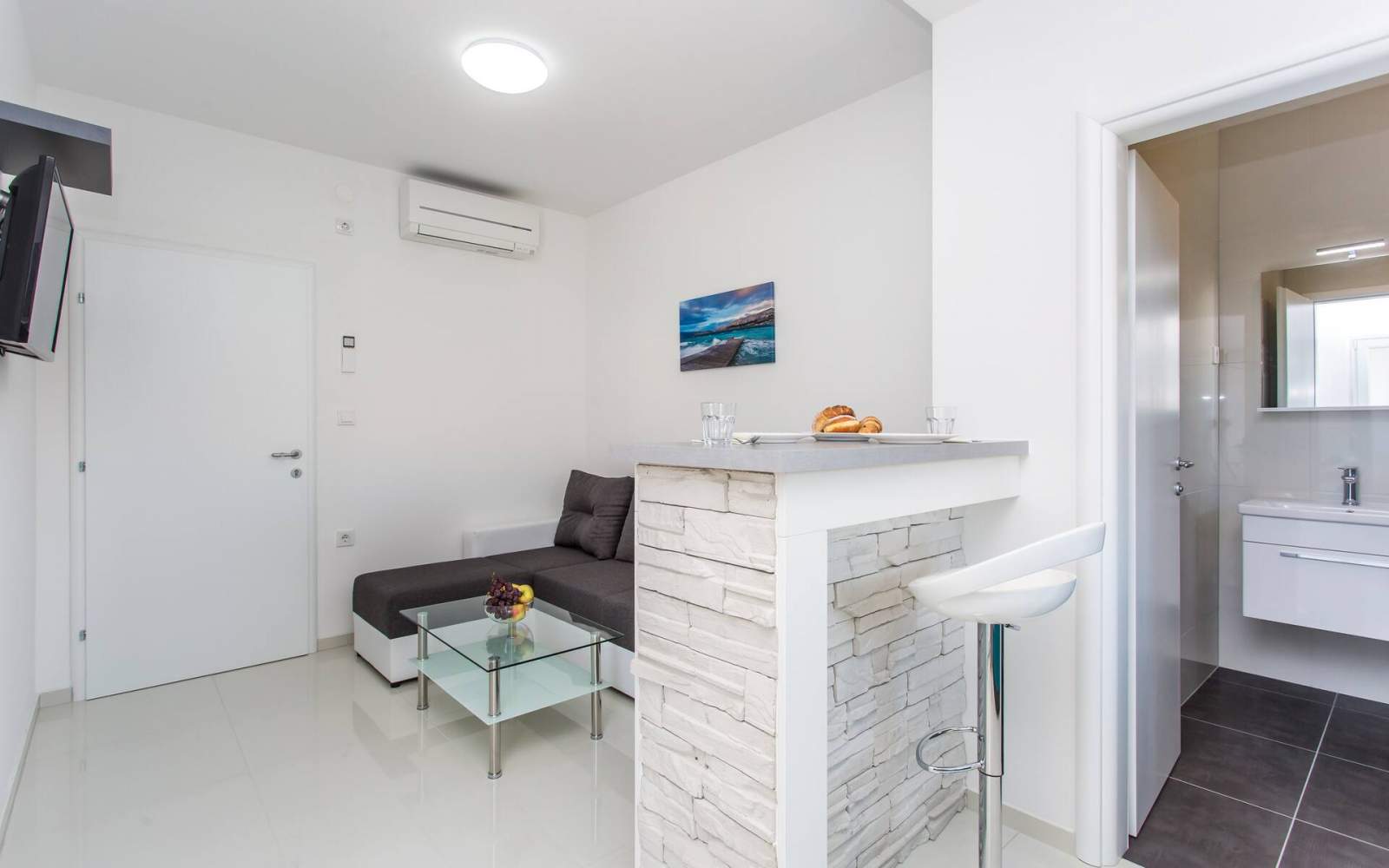 Das Apartment ist mit Klimaanlage, SAT-TV und kostenlosem WLAN ausgestattet.