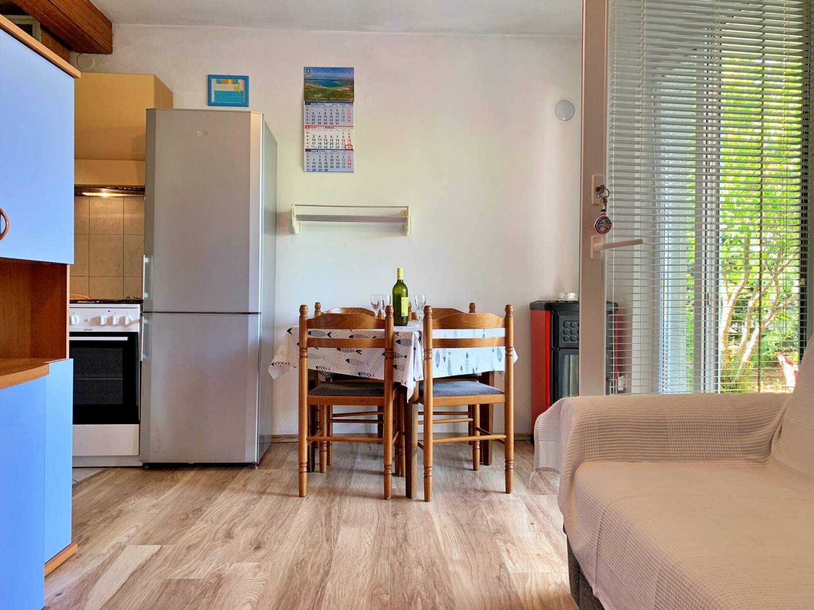 Dieses gemütliche Apartment liegt nur 270 m vom Meer entfernt und verfügt über eine 15 m2 große Terrasse, die von einem Garten umgeben ist und für mehr Privatsphäre sorgt. Ein Grillplatz ist ebenfalls vorhanden. Die Küche ist komplett ausgestattet mit einem Elektro-/Gasherd, Backofen, Kühlschrank mit Gefrierfach, Kaffeemaschine, Wasserkocher, Toaster und Geschirrspüler. Das Badezimmer verfügt über eine Dusche, eine Toilette, einen Haartrockner und eine Waschmaschine. Der Küchenbereich verfügt außerdem über einen Essbereich, ein Sofa und einen Fernseher mit Satelliten- und Kabelkanälen. Kostenlose Privatparkplätze, WLAN und Klimaanlage sind im Preis inbegriffen. Der Eigentümer wohnt nebenan und steht bei Bedarf zur Verfügung.