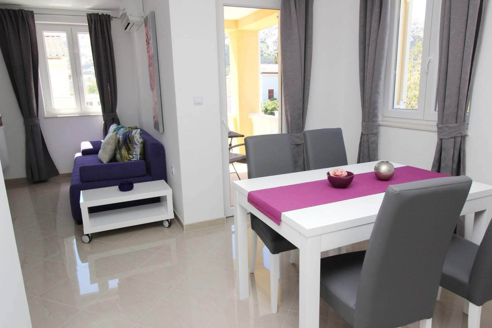 Dieses moderne Apartment befindet sich in einem Haus mit gemeinschaftlichem Pool, nur 200 m vom Hauptstrand von Baska und 100 m vom Stadtzentrum entfernt.