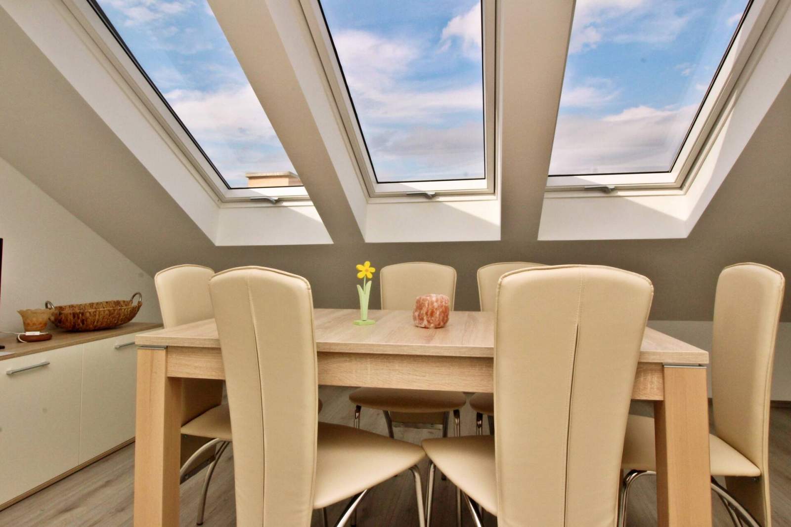 - Esszimmer, Wohnzimmer und Küche im gleichen Raum