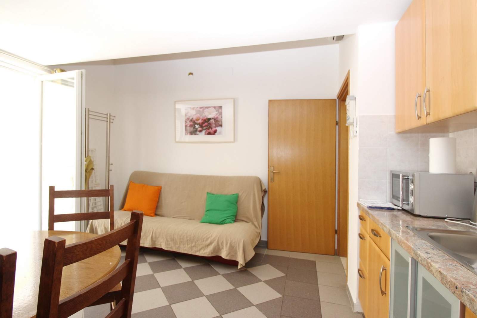 Das Apartment verfügt über eine voll ausgestattete Küche mit Essbereich, ein Badezimmer (Dusche, Toilette) und eine Terrasse (8 m2).