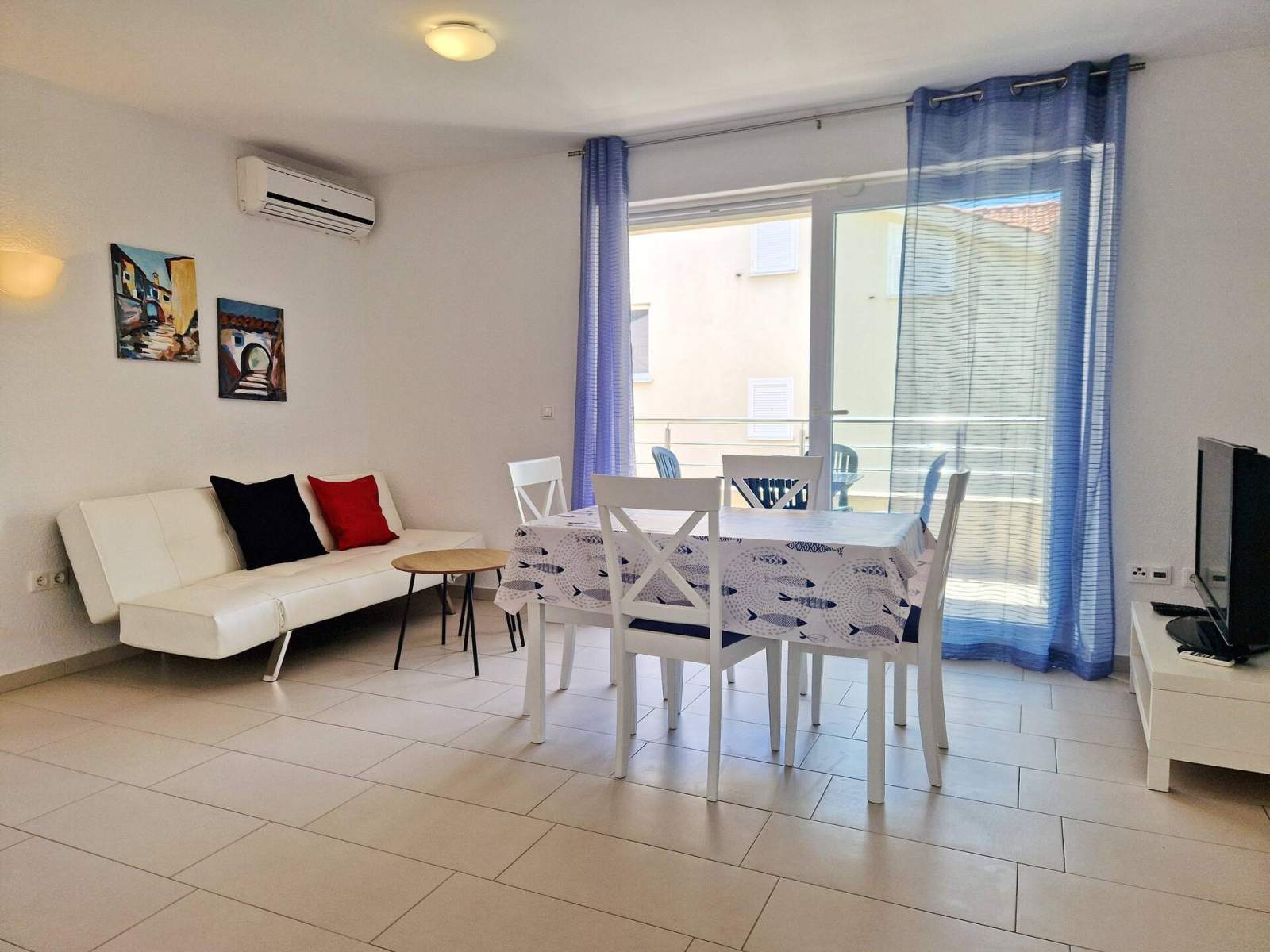 Das Apartment ist mit Klimaanlage, SAT-TV und kostenlosem WLAN ausgestattet.
