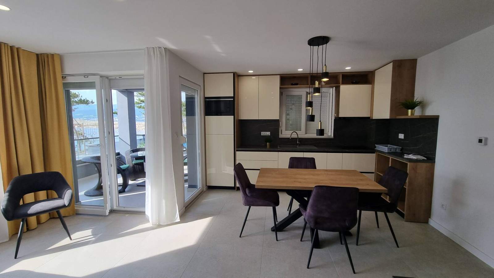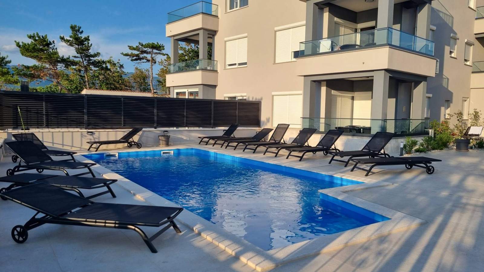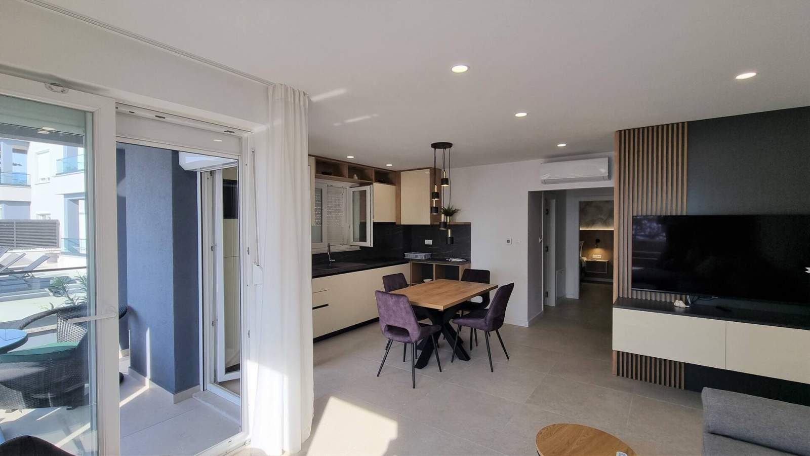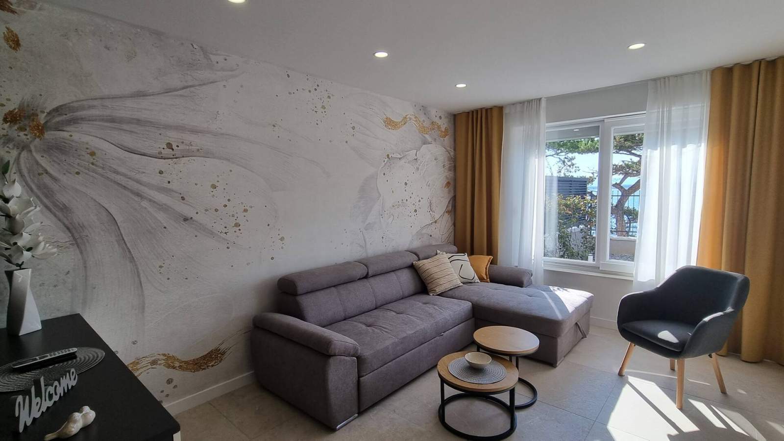 Novi apartman opremljen svime što vam je potrebno za višednevni boravak (od čaša do najčešće korištenih uređaja, poput tostera ili kuhala za vodu). Odmah ispred terase nalazi se bazen za osvježenje, a na pješačkoj udaljenosti nalaze se brojne plaže koje uglavnom posjećuju lokalci. Centar je udaljen dvadesetak minuta hoda i nema uobičajenih gužvi u primorskim ljetovalištima, što smo jako cijenili! Ako tražite miran boravak, ovo je pravo mjesto za vas.