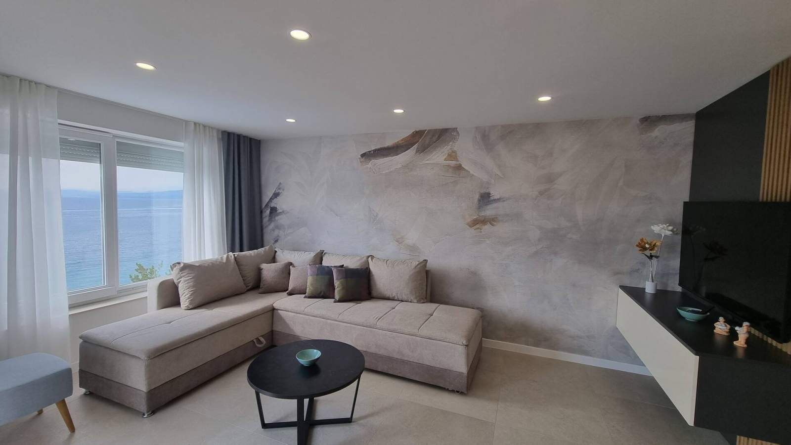 Dieses luxuriöse und moderne Apartment befindet sich in einem ruhigen Apartmentkomplex nur 30 Meter vom Meer entfernt, umgeben von Natur, vielen Buchten, Kieselstränden und Wanderwegen. Es bietet einen gemeinschaftlichen Salzwasserpool (36 m2), der von Mai bis Oktober geöffnet ist und dessen Temperaturen normalerweise 20-26 °C erreichen. Das Apartment befindet sich im 2. Stock und verfügt über ein Schlafzimmer mit einem Doppelbett, eine moderne Küche mit Induktionskochfeld, Kühl- und Gefrierschrank, Wasserkocher, Kaffeemaschine, Toaster, Mikrowelle und Geschirrspüler. Das Badezimmer verfügt über eine Dusche und eine Toilette. Der Essbereich und das Wohnzimmer bieten einen gemütlichen Raum mit einem Sofa und einem Smart-TV, während kostenloses WLAN im gesamten Gebäude verfügbar ist.