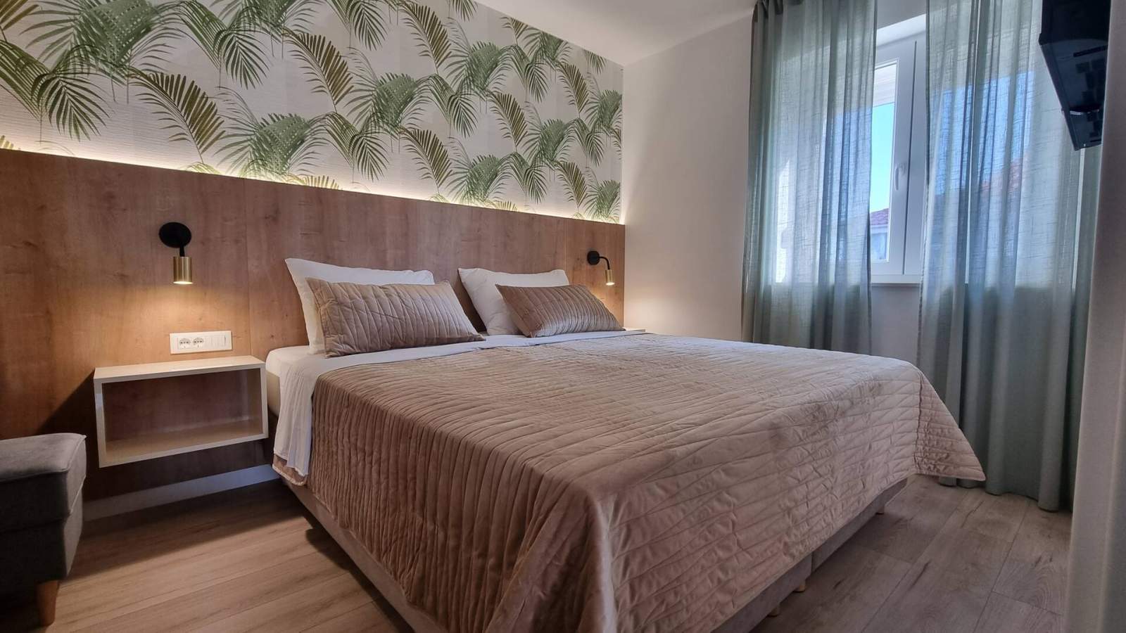 Bilo je super što ste mogli odabrati plažu koja vam odgovara - mi preferiramo privatnost, bilo je takvih plaža odmah pored smještaja. Novi, čist smještaj, odličan bazen s ručnicima, parking iza vrata na daljinsko upravljanje.