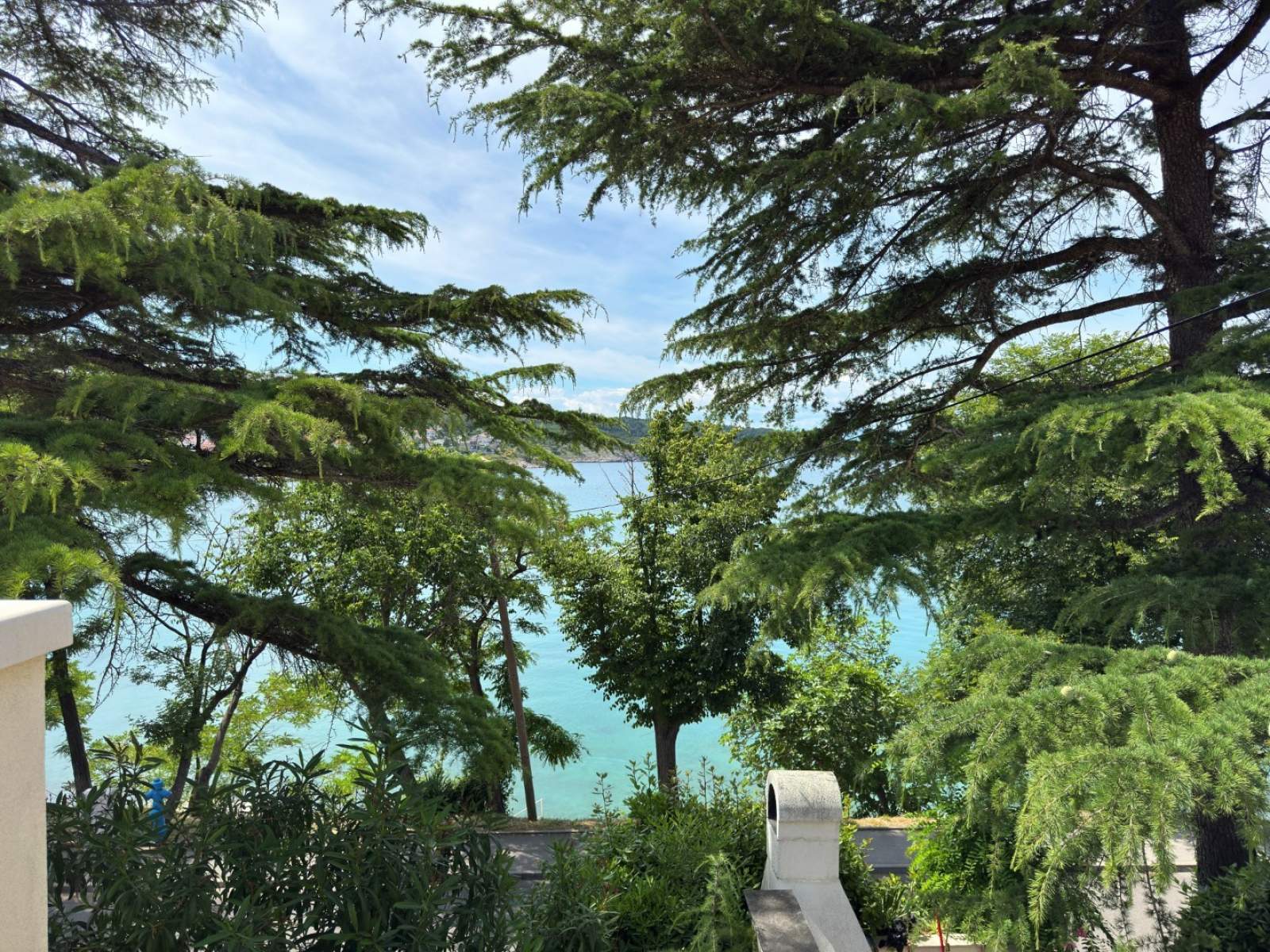 Am Eingang des Apartments befindet sich ein 3 m2 großer Balkon mit Meerblick. Es gibt zwei Badezimmer mit Dusche und WC. Den Gästen stehen außerdem eine Außendusche, ein gemeinschaftlicher Grillplatz und ein privater Parkplatz hinter dem Haus zur Verfügung.