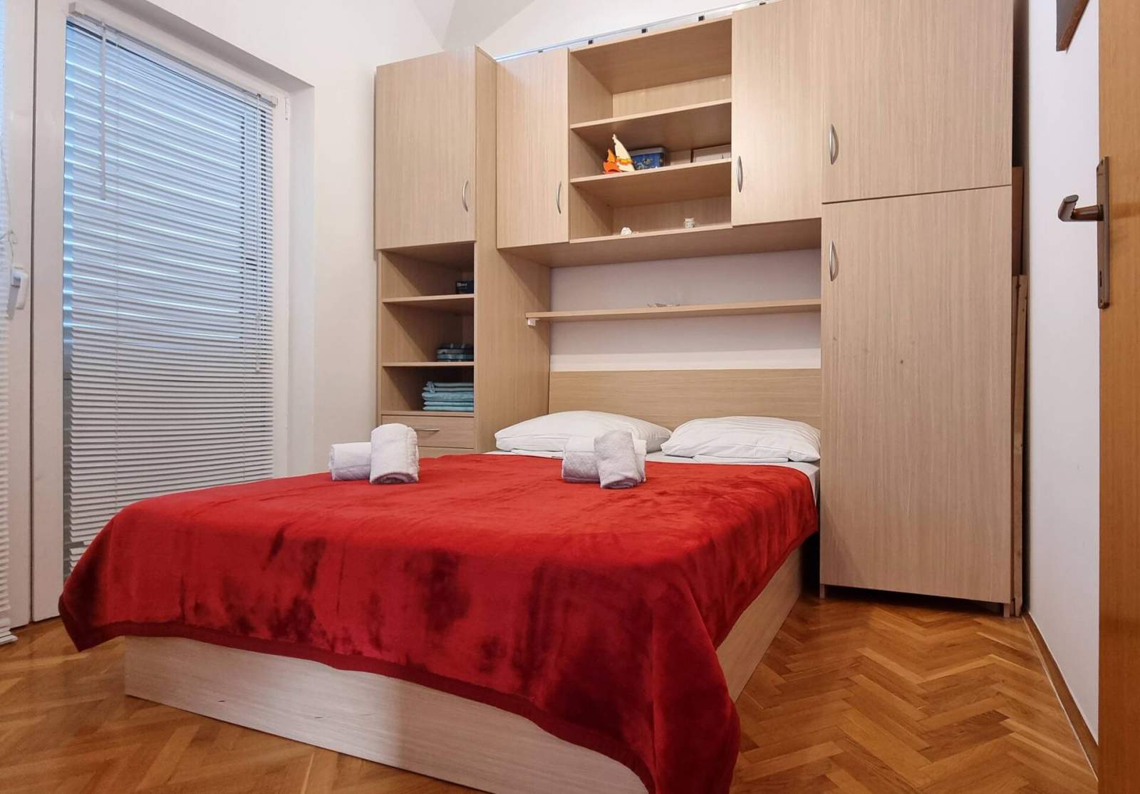 Es hat 1 Schlafzimmer, eine voll ausgestattete Küche mit Wohnzimmer und zusätzlichen Betten (zwei separate Betten - im oberen Stockwerk gelegen), einem Badezimmer (Dusche, Toilette) und einem Balkon (2 m2) ausgestattet.