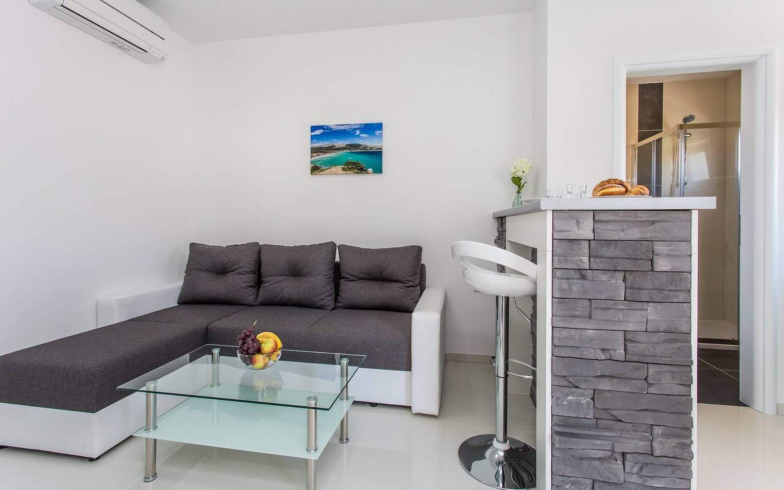 The apartment is equipped with air conditioning, SAT TV and free Wi-Fi.