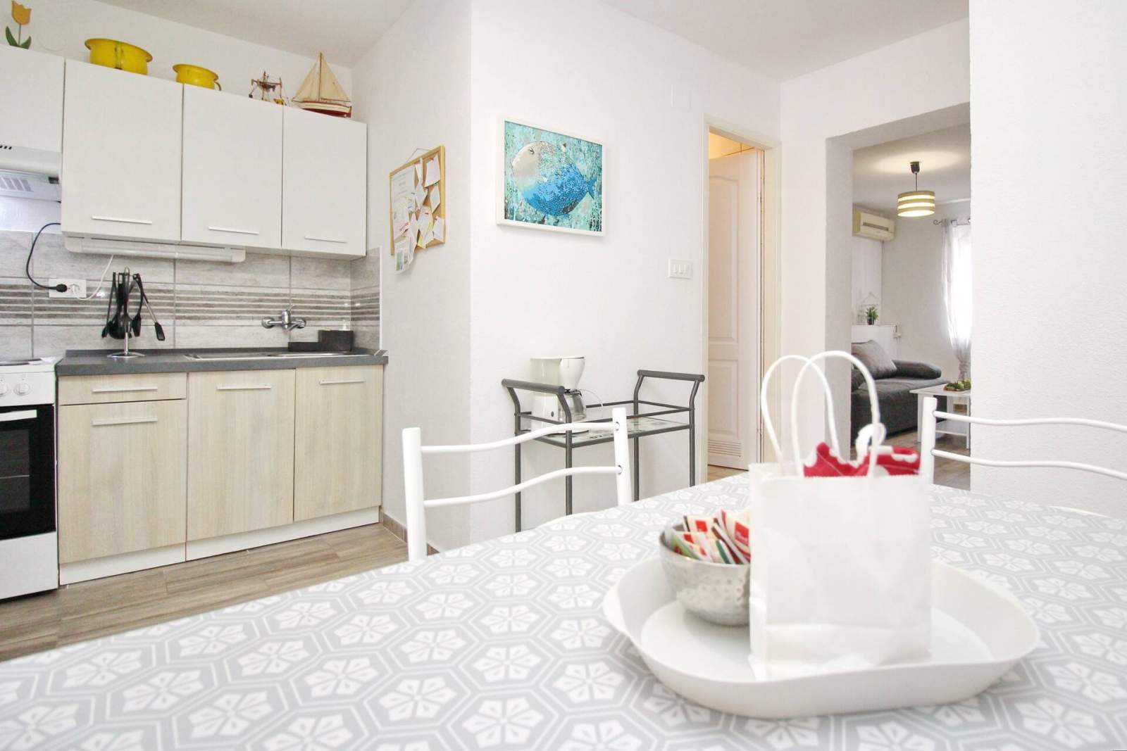 The apartment is located 250 m from the sea and 1 km from the center of Baska, where you can explore a variety of shops, restaurants and local attractions.