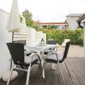 The apartment includes a private terrace, which opens up to a fenced garden with private BBQ.
