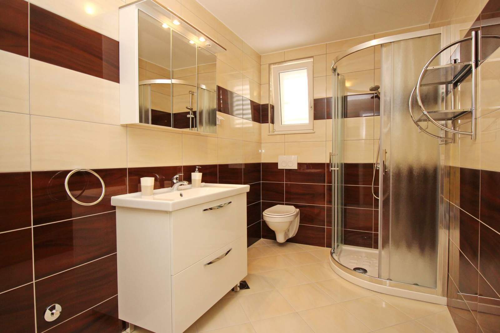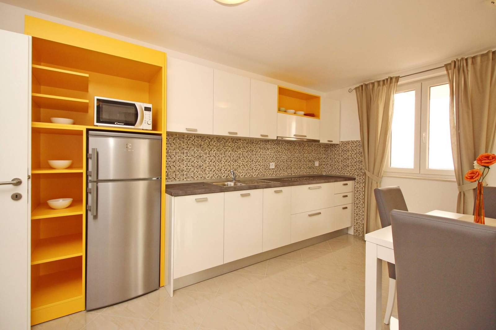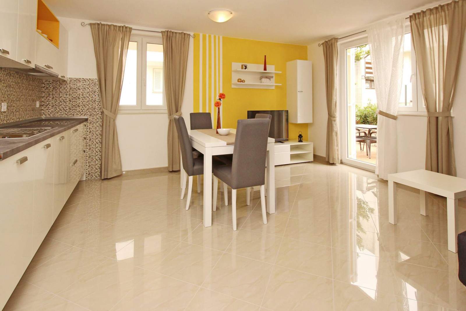 This modern, spacious apartment is located in a house with shared pool, about 300 m from the main beach of Baska and 200 m from the city center.
