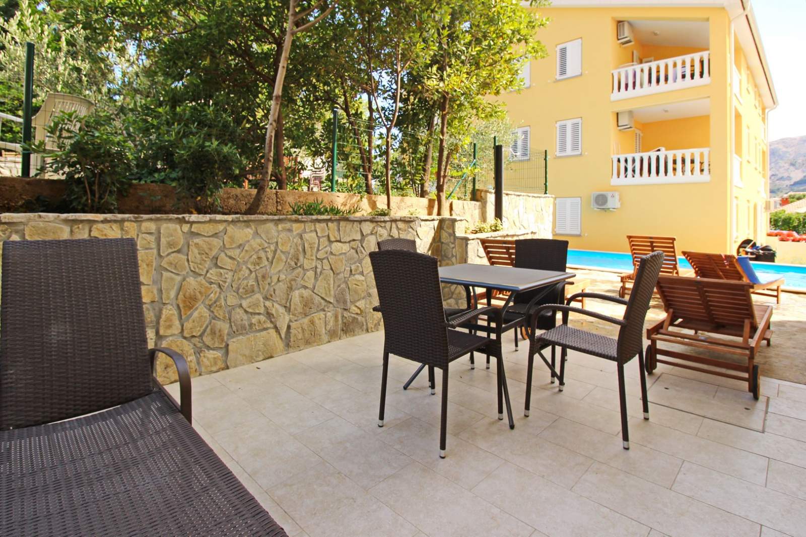 This modern, spacious apartment is located on the underground level (subterrain) of a house with shared pool, about 300 m from the main beach of Baska and 200 m from the city center.