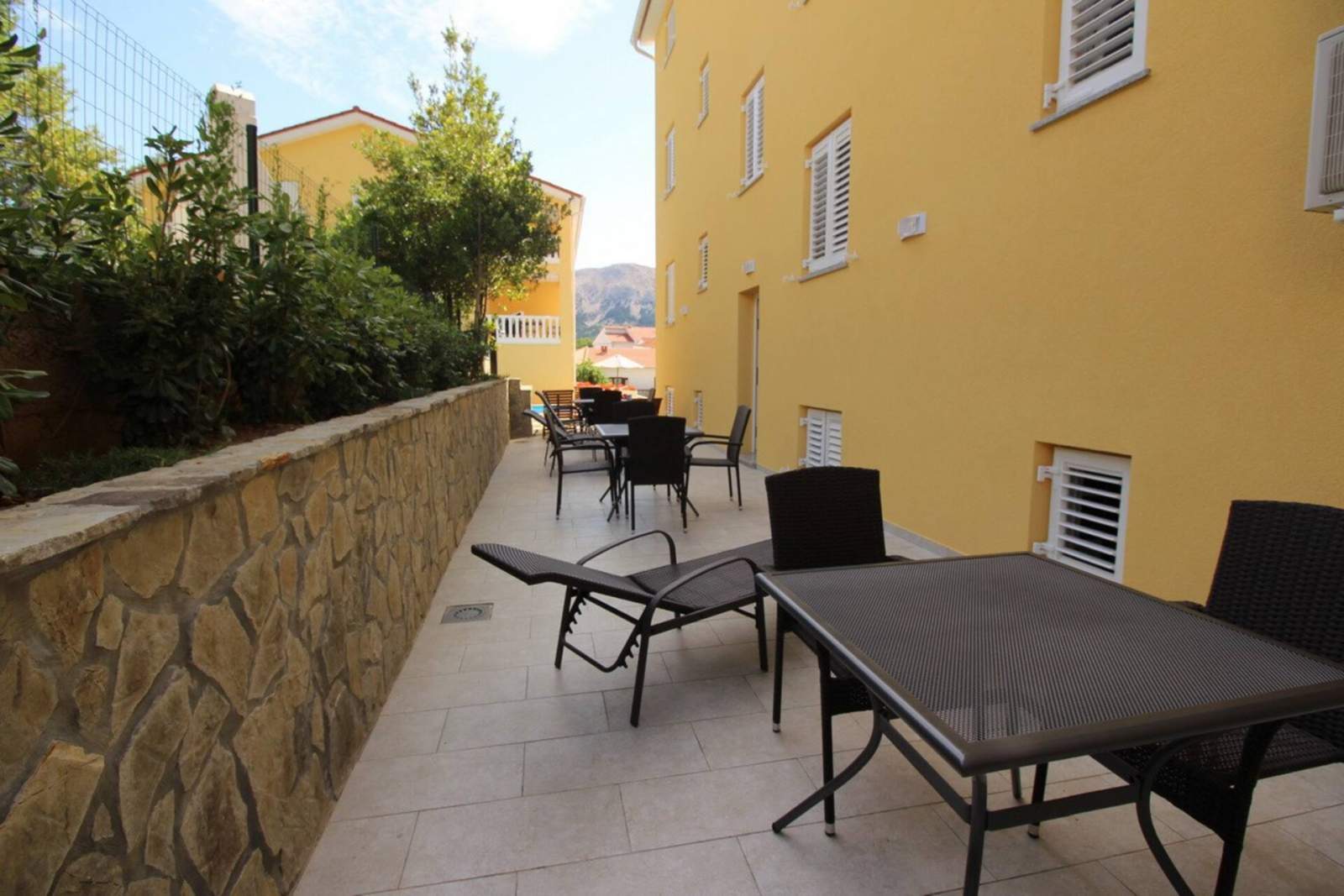 This modern, spacious apartment is located on the underground level (subterrain) of a house with shared pool, about 300 m from the main beach of Baska and 200 m from the city center.
