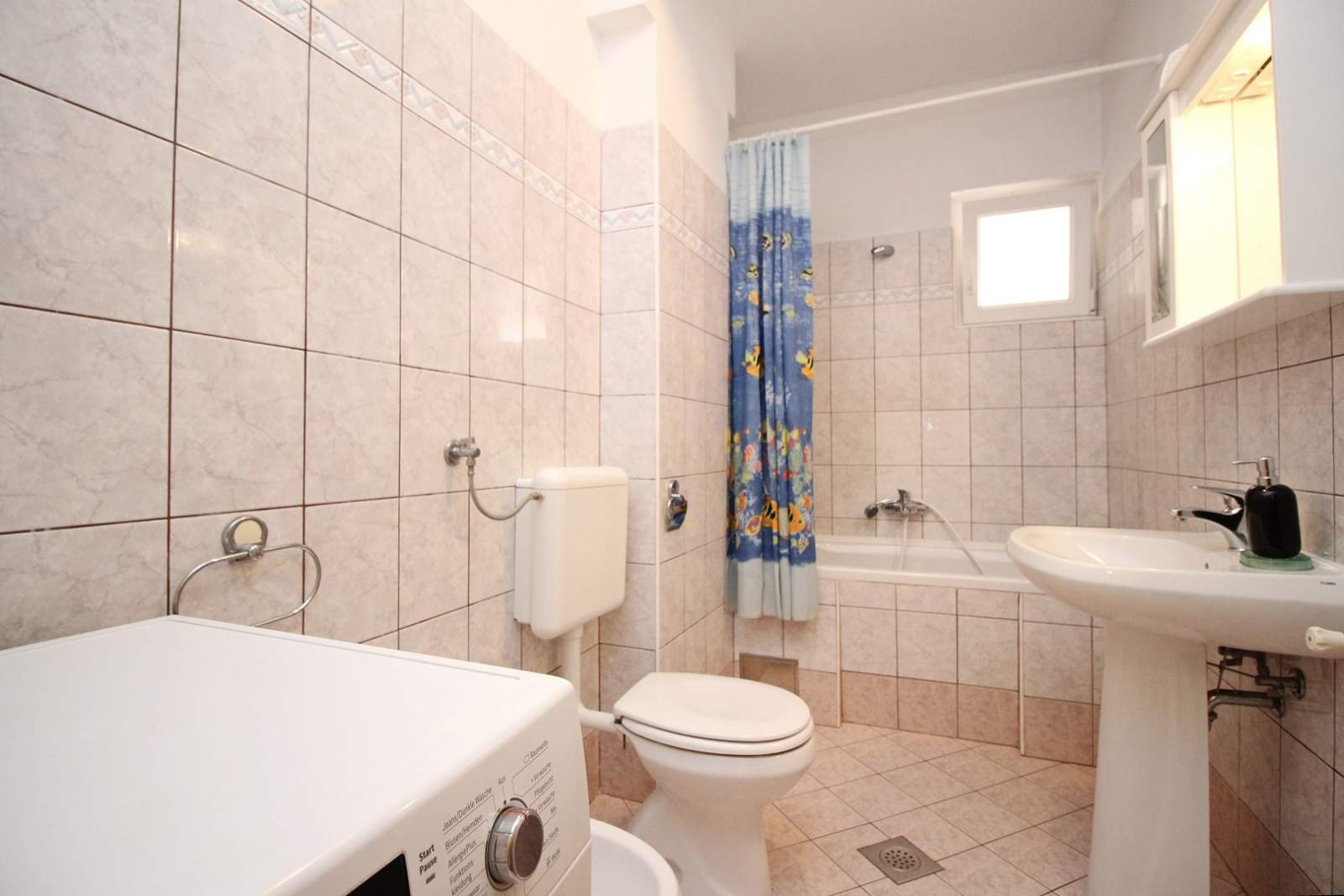 The apartment is equipped with air conditioning, SAT TV, free Wi-Fi and a washing machine.