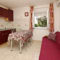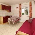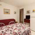 This charming ground-floor apartment in Šilo on Krk Island offers a perfect retreat for 2-4 guests. Step into a cozy interior featuring a bedroom with a queen-size bed, a wardrobe, and a comfortable pull-out sofa for two. The inviting living/dining area includes a kitchenette, a dining table, air conditioning, and satellite TV, which is the perfect space for relaxation. The kitchenette has a 2-burner electric stove, fridge with freezer, kettle, and coffee machine. In the bathroom, you'll find a shower, bidet, toilet, and hairdryer, with towels also provided.