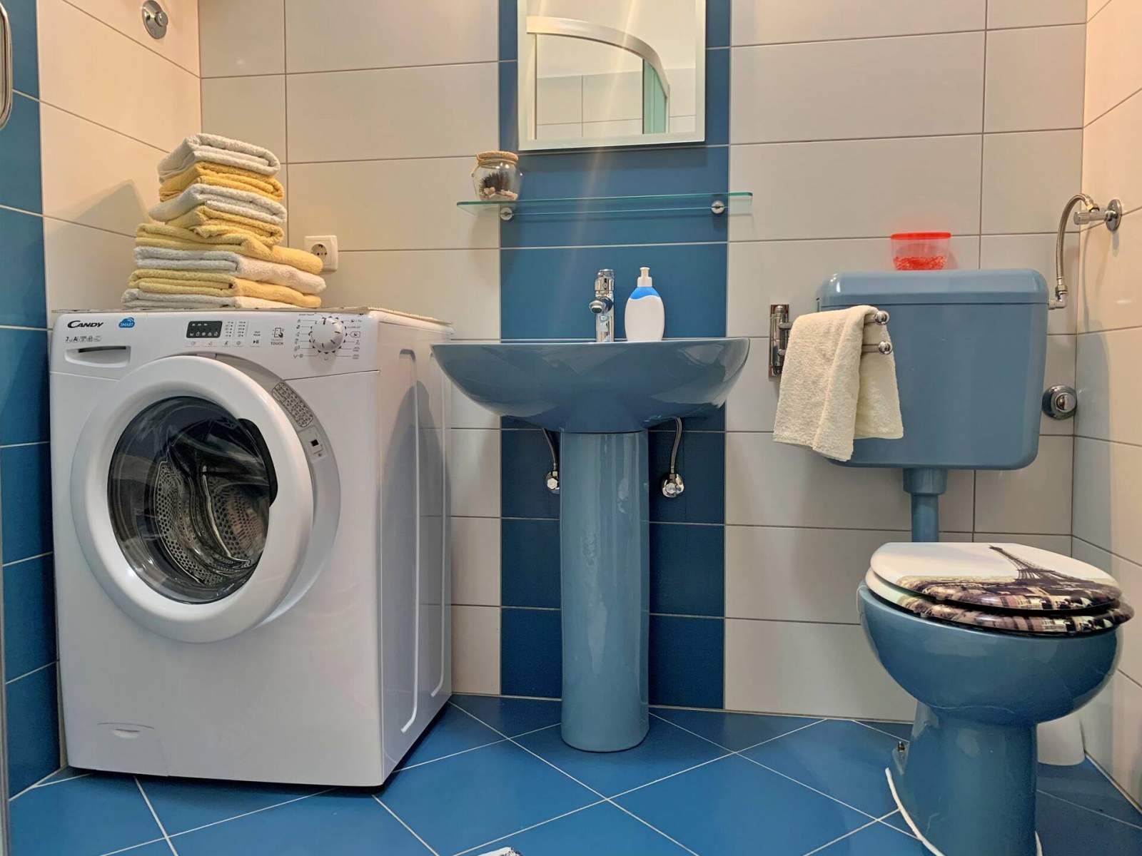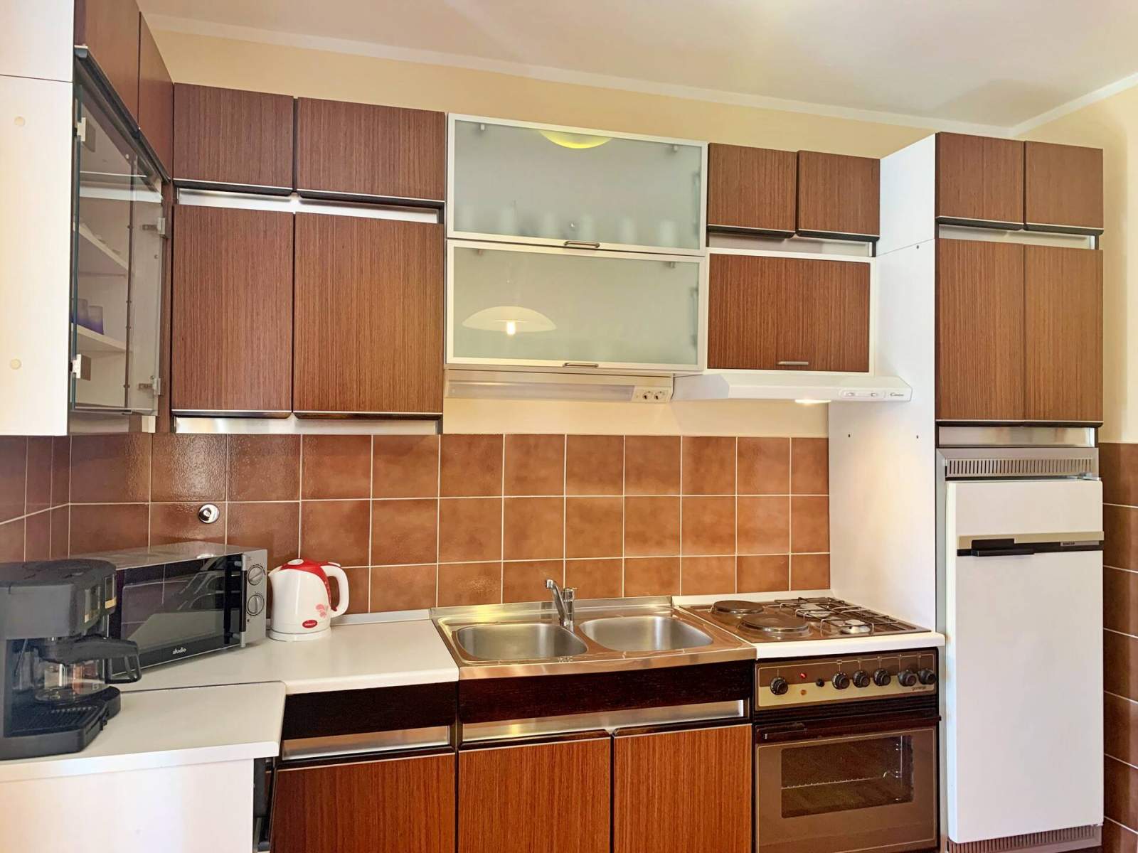 This apartment 450 m from the sea offers a cozy stay for up to 4 guests. The bedroom includes a queen-size and a single bed, while the living area features a pull-out sofa for one person, satellite/cable TV, Wi-Fi, and air conditioning. The kitchen is fully equipped with an electric stove, oven, fridge/freezer, microwave, coffee machine, kettle, dishwasher and toaster. The bathroom has a shower, toilet, and washing machine. Through the bedroom or kitchen you can access a private balcony (15 m2) with city and sea views. Free parking is available on the premises, and pets are welcome for an additional fee.