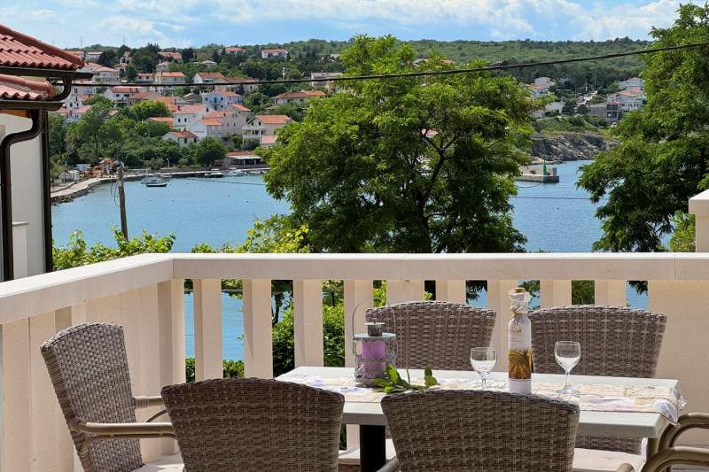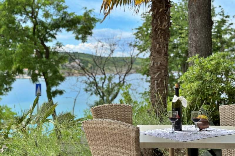 This inviting apartment is just 20 m from the sea and a sandy beach, offering the perfect seaside retreat. It features a bedroom with a queen-size bed, one single bed, and air conditioning, a dining table, and Wi-Fi. The kitchen is equipped with an electric stove, fridge with freezer, dishwasher, microwave, coffee machine, and kettle.
