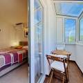 It features a fully equipped kitchen with a double bed, a bathroom (shower, toilet) and a balcony (3 m2). It is equipped with air conditioning, Wi-Fi, and SAT-TV.