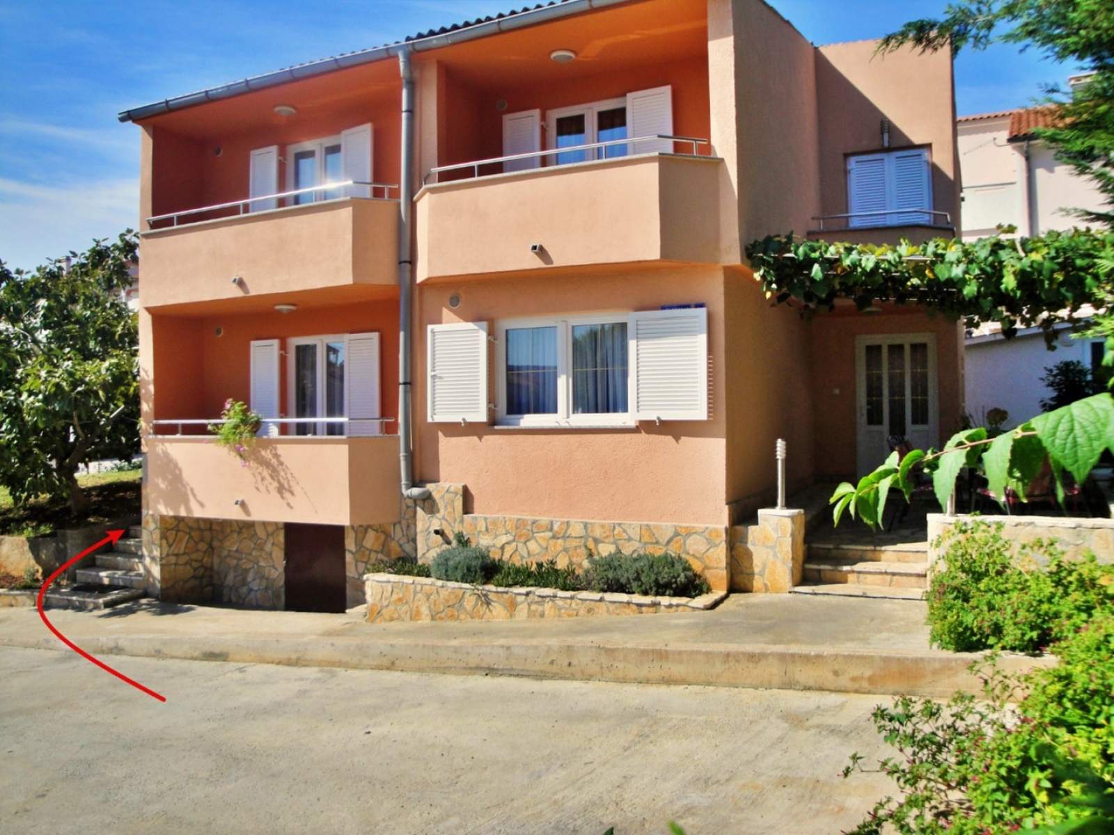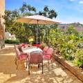 This comfortable two-floor apartment for 4-6 guests is just 90 m from the sea, offering a relaxing stay near the coast. It features two bedrooms, one with a queen-size bed and single bed, and the other with a queen-size bed. Both bedrooms have a private partially roofed balconies (5 m2) with partial sea views.