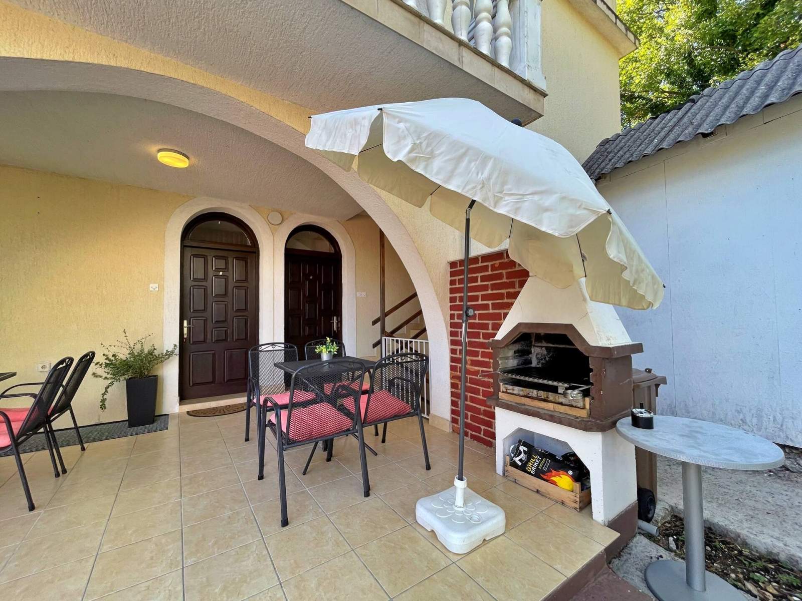 Vani, prostrana, natkrivena terasa - zajednička sa susjednim stanom - s vlastitom garniturom za sjedenje i suncobranom. Zajednički prostor za roštilj prikladno je smješten pored terase. Kućni ljubimci su dobrodošli uz nadoplatu, a dječji krevetić dostupan je na zahtjev (ovisno o raspoloživosti). Ispred terase je dostupno dovoljno parkirnog mjesta.