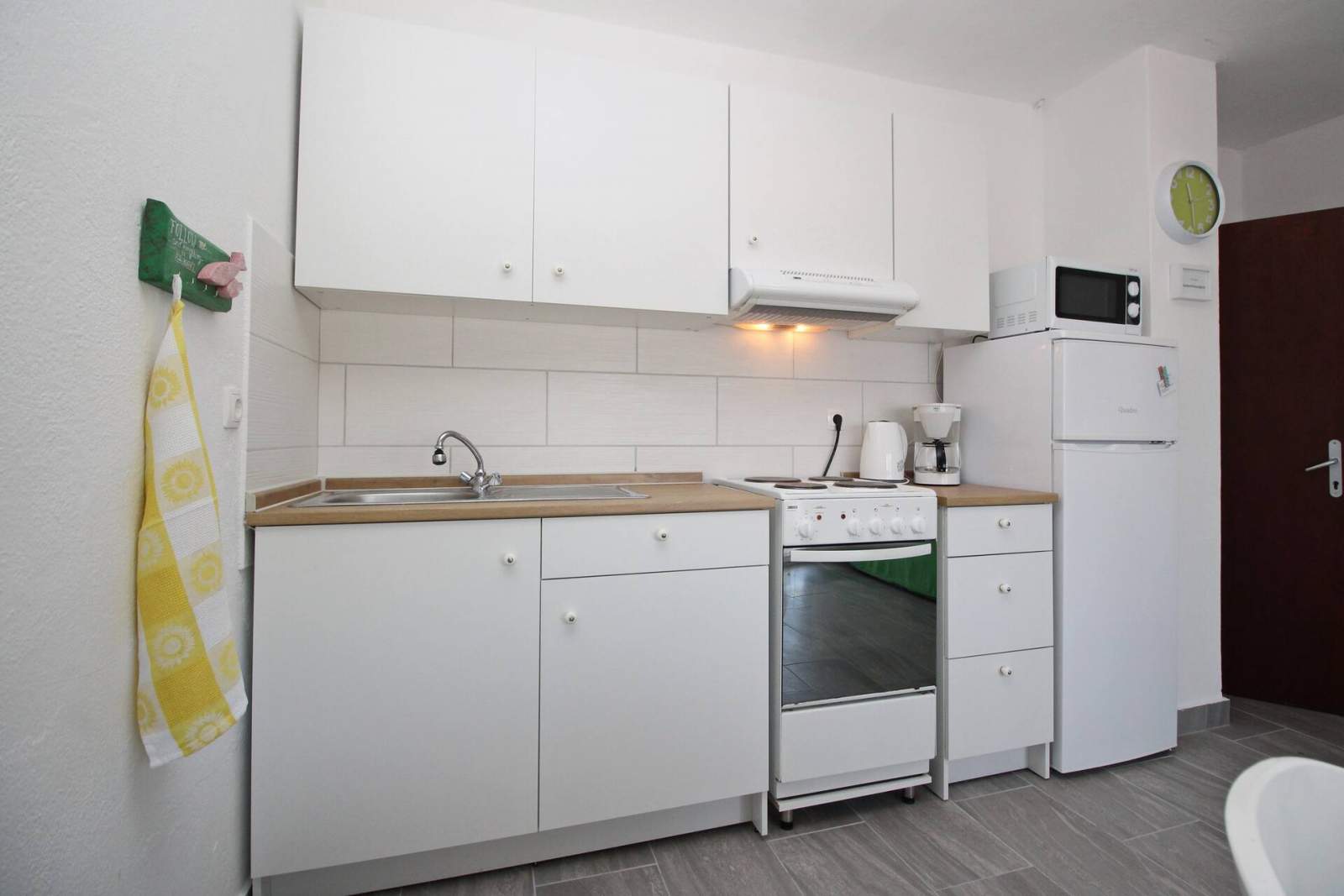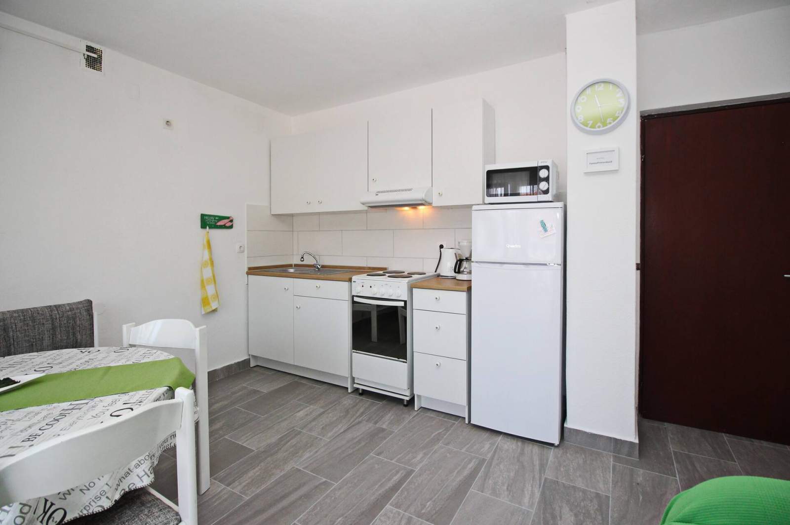 Apartman ima potpuno opremljenu kuhinju s dnevnim boravkom (dodatni ležaj na kauču za 1 osobu), kupaonicu (tuš, WC) te prostrani balkon s plinskim roštiljem.