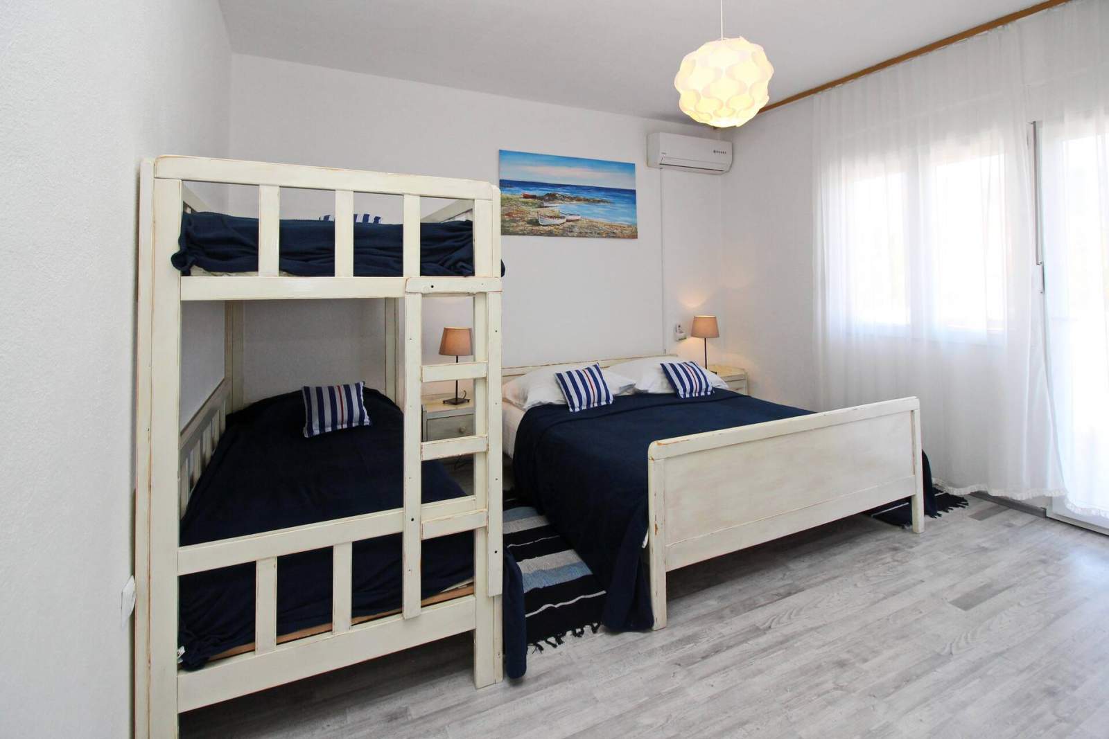 Ovaj udoban apartman od 40 m2 na prvom katu, namijenjen za 4–6 osoba, nudi dvije spavaće sobe (obje s bračnim krevetima, od kojih jedna ima i dodatni krevet na kat).