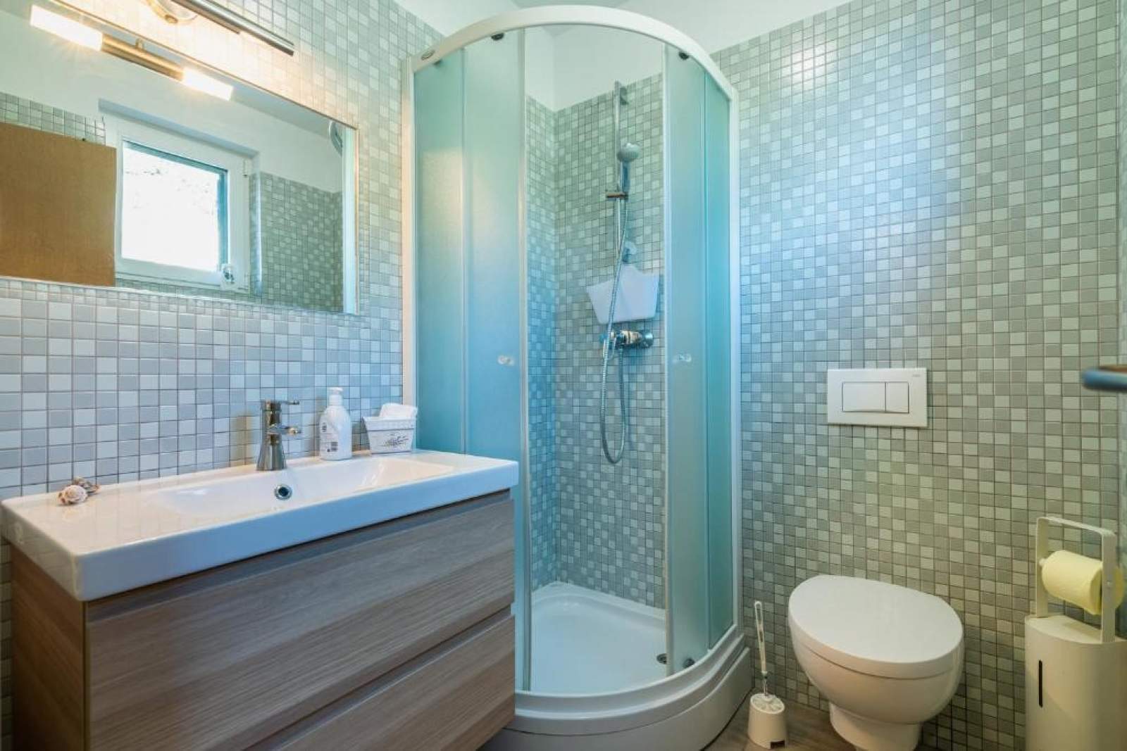 Vanjski prostor uključuje sezonski bazen, sunčalište, prostor za roštilj i druženje, boćalište, te veliki vrt oplemenjen maslinama i mediteranskim biljem.