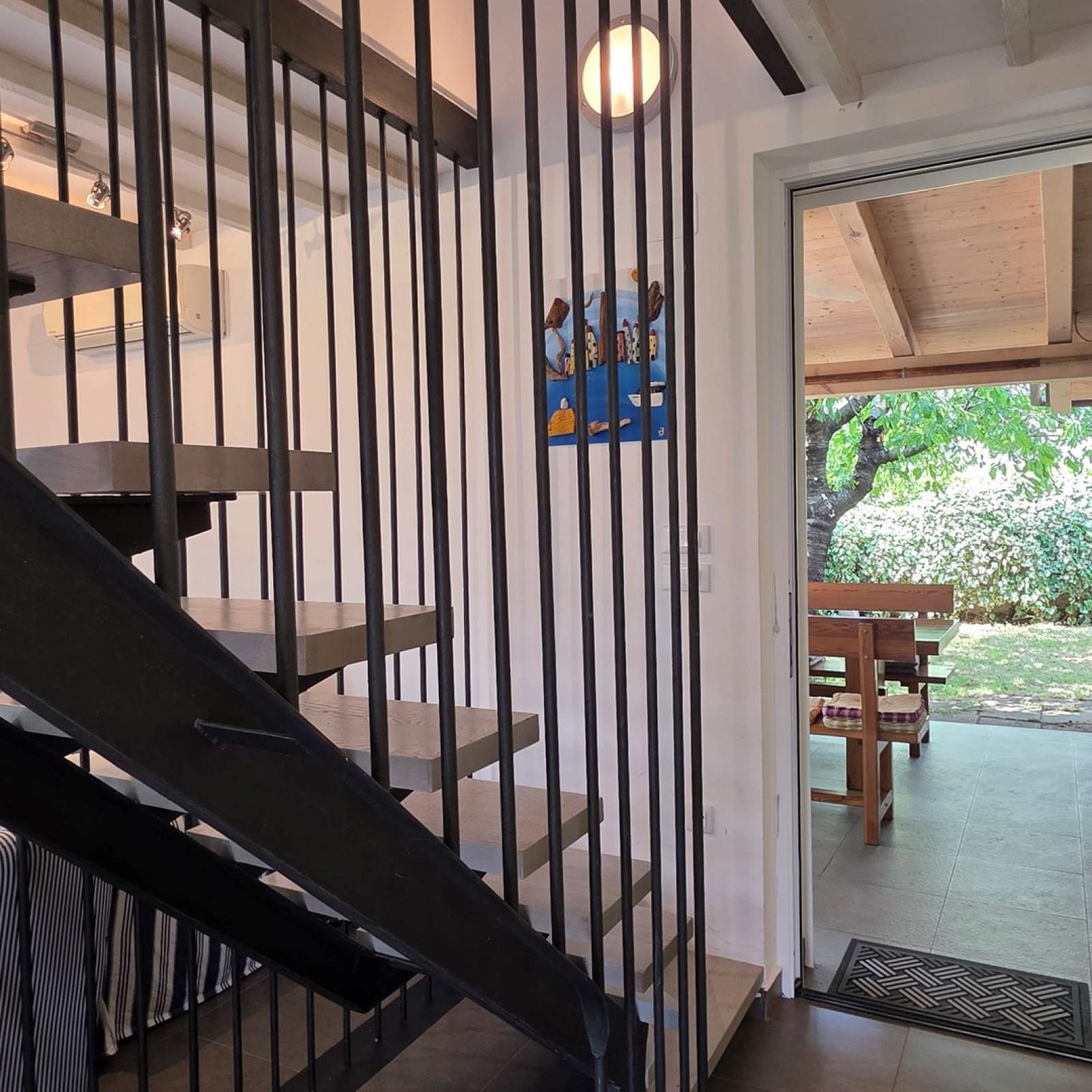 U prizemlju se nalazi dnevni boravak s dodatnim ležajem na kauču, potpuno opremljena kuhinja i kupaonica (tuš, WC).