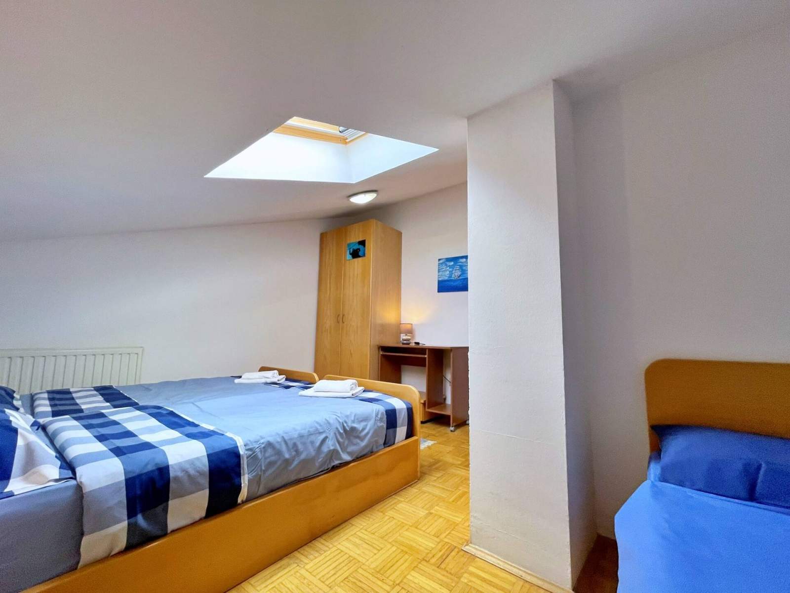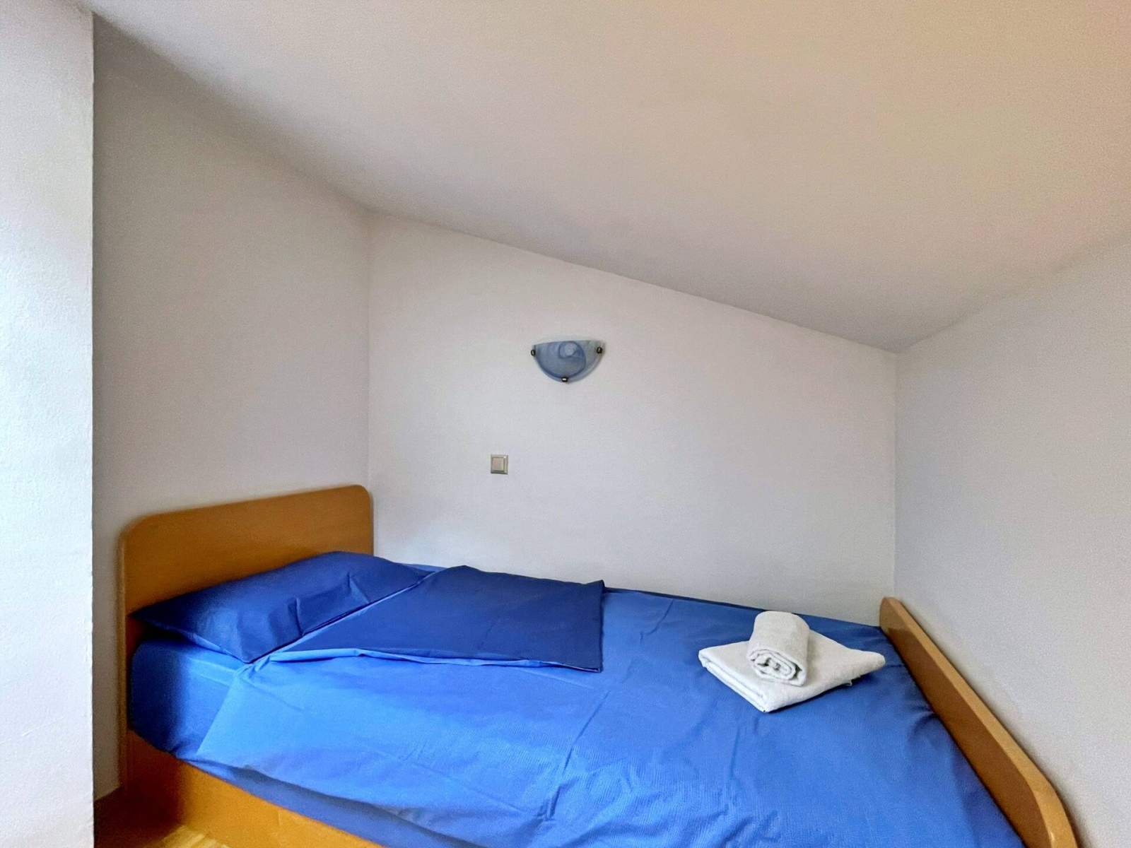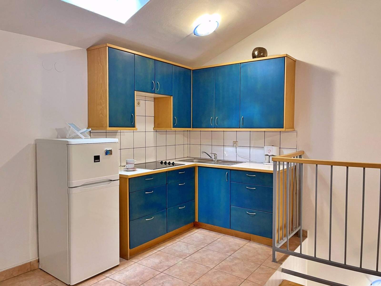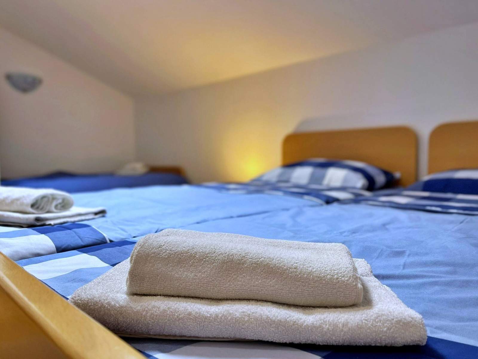 Ovaj apartman, samo 20 metara od mora i plaže, nalazi se u potkrovlju i ima jednu spavaću sobu sa tri jednostruka kreveta. Otvoreni dnevni boravak, blagovaonica i kuhinja uključuju stol za blagovanje, kauč na razvlačenje za jednu osobu, klima uređaj i satelitsku/kabelsku TV. Kuhinja je opremljena električnim štednjakom sa 4 plamenika, hladnjakom sa zamrzivačem, aparatom za kavu, kuhalom za vodu i tosterom. Kupaonica ima tuš i WC. Gostima su na raspolaganju posteljina, ručnici, besplatan Wi-Fi i parkirno mjesto. Popularni lokalni bistro i ronilački centar smješteni su u prizemlju, nudeći tradicionalnu mediteransku kuhinju i podvodne avanture. U ronilačkom centru možete dogovoriti uron s broda ili s obale.