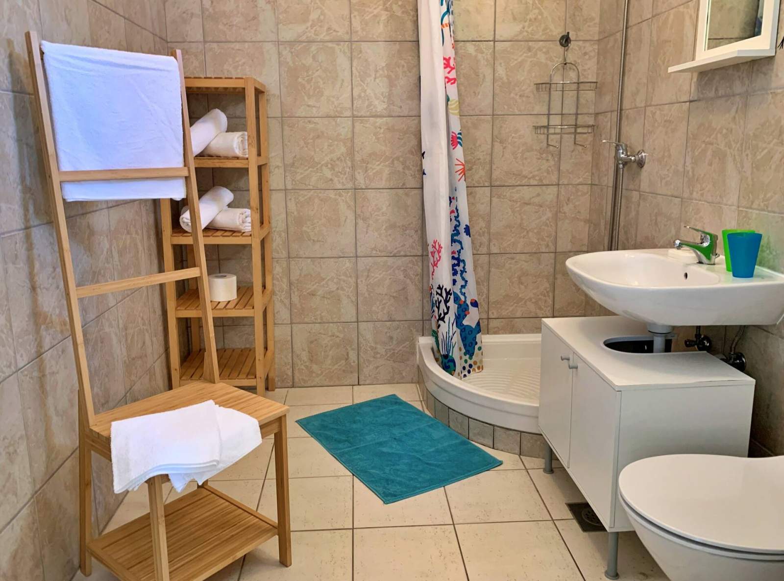 Izađite na šarmantan natkriveni balkon od 5 m2 za objedovanje na otvorenom ili iskoristite zajednički roštilj i vanjski tuš. Prostrana kupaonica ima tuš i WC. Wi-Fi, klima uređaj i privatno parkirno mjesto ispred zgrade su uključeni.